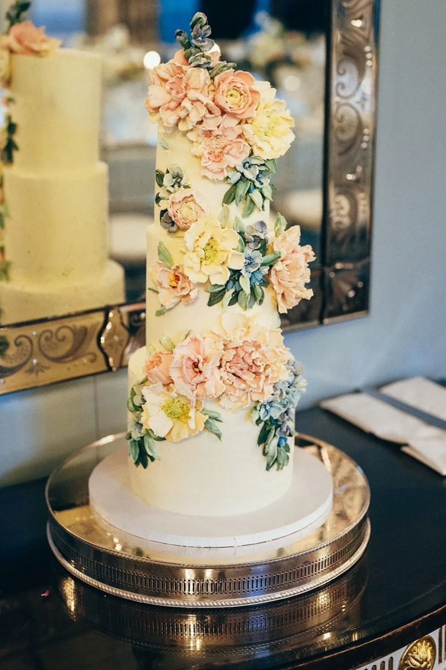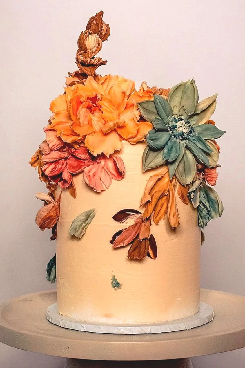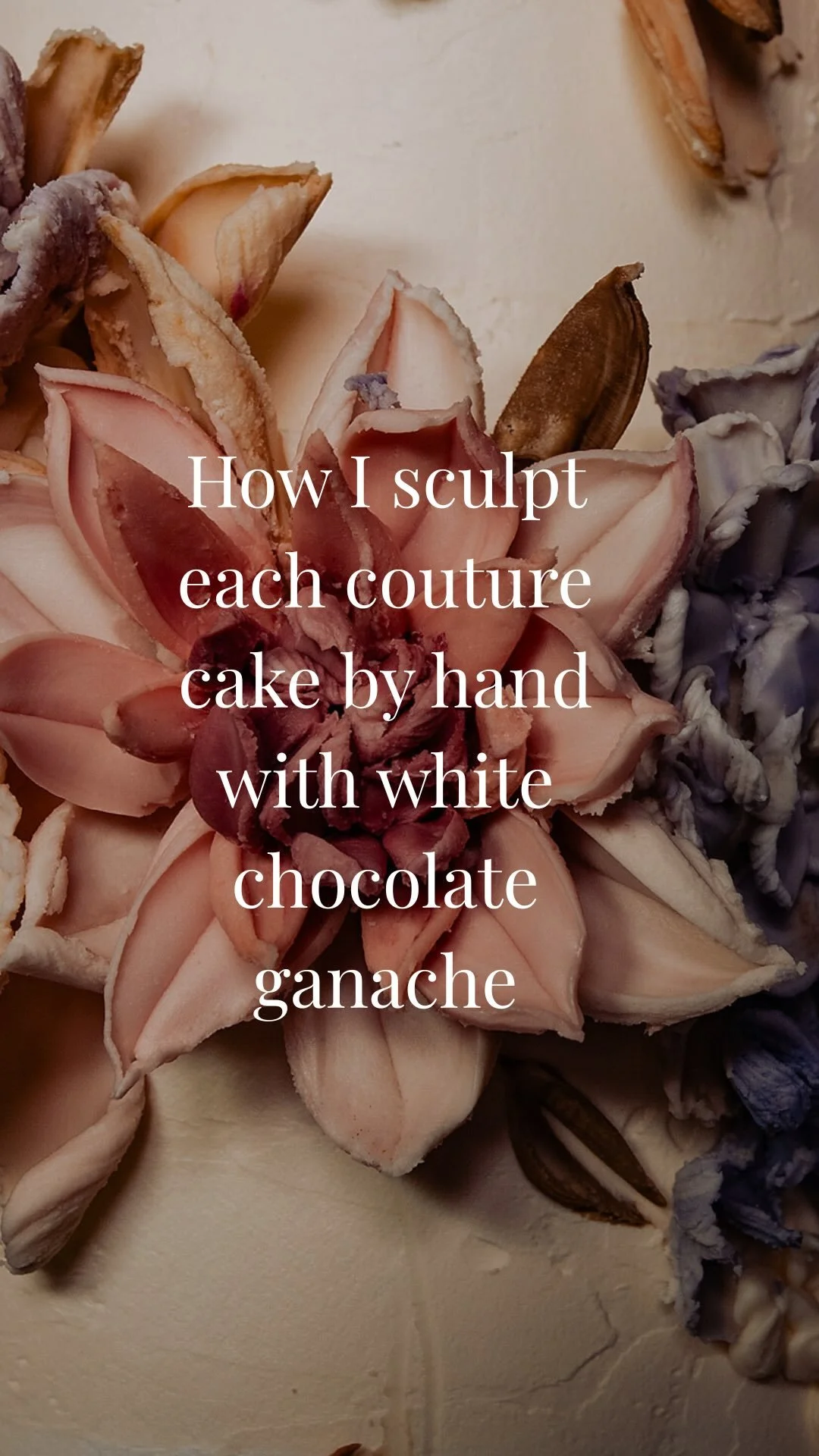 All my cakes are sculpted with white chocolate ganache, using palette knives. No fondant🤢, no melting, no wilted real flowers. Just delicious white chocolate, sculpted to match the flowers you’ve chosen for your big day.